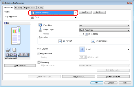 Combinations of printer driver settings corresponding to a variety of printing purposes are provided with the printer driver as "profiles." This enables you to print documents according to a desired objective by simply selecting a profile from the [Profile] list.