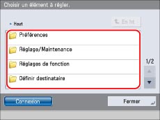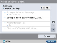 Une fois la définition des réglages terminée, appuyer sur [Déconnex.] dans la partie inférieure droite de l'écran pour se déconnecter.