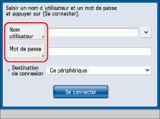 Appuyer sur [Nom utilisateur] → saisir un nom d'utilisateur → appuyer sur [OK].
