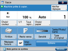 Si [Gestion des numéros de service] ou [Limiter fonctions] de [Gestion des numéros de service] est réglée sur "Oui", l'écran de démarrage peut différer de celui défini pour s'afficher par défaut au démarrage.