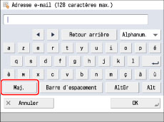 Si l'on appuie sur la touche [Maj] du clavier, le prochain caractère saisi sera en majuscule. La touche [Maj] est relâchée à chaque saisie d'un caractère et les prochains caractères seront en minuscule.