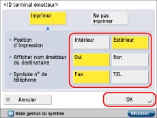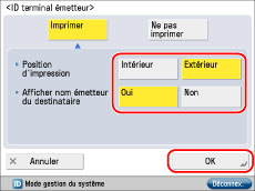 Les informations d'identification du terminal sont imprimées hors de la zone d'image sur le papier du destinataire.