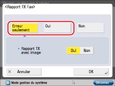 Si "Erreur seulement" ou "Oui" est associé à [Rapport TX] dans [Réglages de fonction] (Réglages/Enregistrement), un rapport TX d'émission est imprimé avec le Rapport TX Fax.