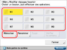 Sélectionner un bouton ([M1] à [M9]) pour mémoriser des réglages → appuyer sur [Mémoriser].