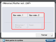 Appuyer sur [Définir destinataire] → [Mémoriser/Modifier conditions rech. LDAP].