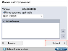 Affiche le nouveau microprogramme applicable sur cette machine.