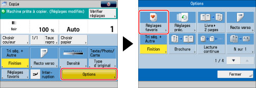 Appuyer sur [Options] → [Réglages favoris].