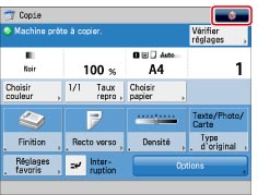 Il est possible de rappeler les réglages sans afficher d'écran de confirmation depuis l'écran des fonctions de base du mode Copie.