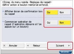 Le nombre de boutons personnels pouvant être enregistrés peut être inférieur au nombre maximum, selon l'utilisation de la mémoire de la fonction Menu rapide.