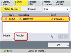 Il est possible d'annuler une tâche d'envoi en cours de lecture en appuyant sur