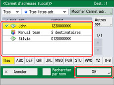 pour procéder à l'envoi à partir de l'écran Carnet d'adresses. |