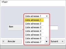 Dérouler la liste → sélectionner une liste d'adresses dans l'une des listes d'adresses 1 à 10.