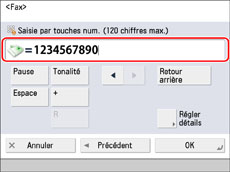 Entrer le numéro de télécopieur du destinataire à l'aide des touches numériques