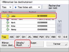 Sélectionner le destinataire à modifier → appuyer sur [Détails/Modif.].
