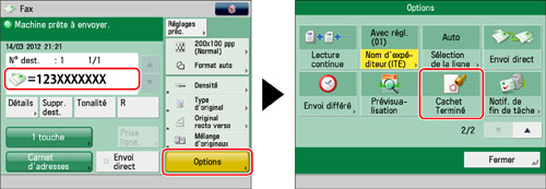 La machine peut imprimer un cachet (d'environ 3 mm de diamètre) au recto des originaux lus et transmis.
