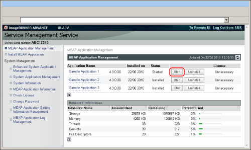 Lorsque les ressources nécessaires pour la mémoire, les threads, les sockets ou les descripteurs de fichiers sont épuisées, l'application ne démarre pas, même en cliquant sur [Start].