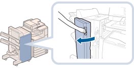 Si nécessaire, retirer tout le papier de sortie du réceptacle de brochures avant de remplacer la cartouche d'agrafes de l'agrafeuse avec piqûre à cheval.