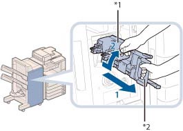 1. Extraire le boîtier d'agrafes vide, en le tenant par les côtés gauche et droit. |