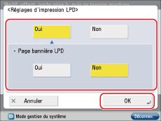 Appuyer sur [Oui] pour utiliser LPD en tant qu'application d'impression.