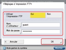 Régler [Oui] sur <Utiliser l'impression FTP> pour utiliser FTP en tant qu'application d'impression.