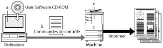 A l'aide d'un pilote d'imprimante, les données à imprimer sont converties en commandes de contrôle.