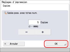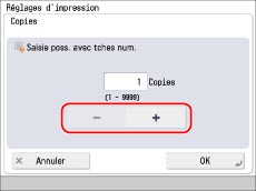 Appuyer sur [-] ou [+] pour saisir le nombre de copies.