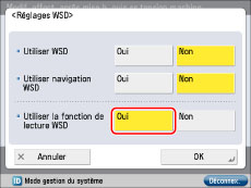 Appuyer sur [Oui] pour <Utiliser la fonction de lecture WSD>.
