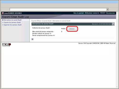 Si la collecte des journaux est lancée ou arrêtée, ce réglage est conservé jusqu'à ce qu'il soit modifié. Il est également conservé lorsque la machine est redémarrée.