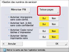 En cas d'utilisation d'une carte, il est également possible de vérifier les totaux de pages en appuyant sur [Suivi statut/Annulation] → [Consommables] → [Vérifier compteur page].