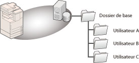 Si le dossier de base est défini sur le serveur WebDAV, les dossiers pour tous les utilisateurs doivent être préparés en avance.