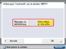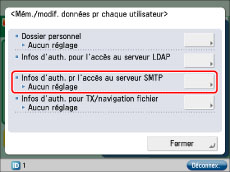 Appuyer sur [Infos d'auth. pr l'accès au serveur SMTP].