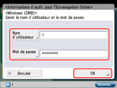Lors de l'utilisation des informations d'authentification pour la connexion à la machine et l'accès au serveur de fichiers