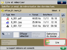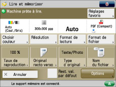 Il est possible de mémoriser jusqu'à 999 pages. Si les originaux lus via le chargeur sont des originaux recto verso, il est possible de mémoriser jusqu'à 1 000 pages. Une fois le nombre maximum d'originaux atteint, un message s'affiche demandant si les autres pages doivent être mémorisées.