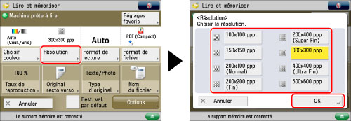 Il est possible de définir la résolution dans laquelle lire l'original. Une lecture en haute résolution augmente la taille du fichier, mais garantit la conservation des détails dans l'image finale.