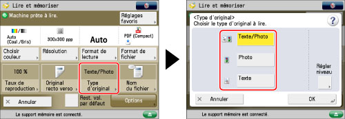 On peut sélectionner manuellement le type d'original en fonction du type d'image.