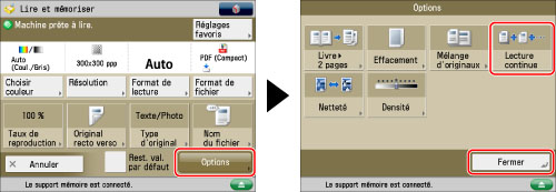 Pour lire des originaux recto et recto verso et les mémoriser en tant que documents recto verso, il convient de les répartir en lots d'originaux recto et recto verso. Par exemple, si le premier lot contient des originaux recto verso, activer le mode [Original recto verso]. Ensuite, le mode [Original recto verso] doit être sélectionné ou annulé manuellement pour chaque lot d'originaux lus.