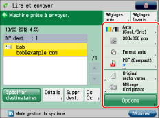Il est possible de spécifier jusqu'à 256 destinataires et d'effectuer simultanément l'envoi. Toutefois, si une adresse de groupe est spécifiée en tant que destinataire, chaque adresse de ce groupe compte pour un destinataire.