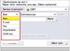 Les catégories de recherche Organisation/Unité organisationnelle peuvent être utilisées uniquement si l'information est répertoriée sur le serveur LDAP.