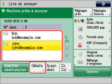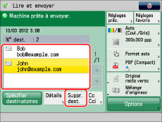 Sélectionner le destinataire à supprimer → appuyer sur [Suppr. dest.].