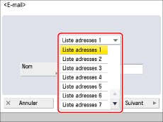 Dérouler la liste → sélectionner une liste d'adresses dans l'une des listes d'adresses 1 à 10.