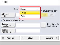 Définir les conditions de réception en fonction des spécifications de la machine du destinataire. Une erreur de transmission peut survenir si les conditions définies ne sont pas prises en charge par la machine du destinataire.