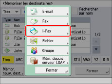 Le premier caractère du nom entré sert au tri de la liste des destinataires lors de l'activation de touches telles que [ABC], [DEF] et [GHI] à l'écran Carnet d'adresses. Un écran permettant d'affiner la recherche dans le carnet d'adresses apparaît lors de l'activation de [Rechercher par nom] à l'écran Carnet d'adresses