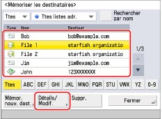 Sélectionner le destinataire à modifier → appuyer sur [Détails/Modif.].