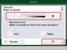 Il est possible d'ajuster le niveau de densité sur le niveau de couleur le plus approprié pour l'original lors de la lecture. Il est également possible de régler la densité du fond pour les originaux tels que les papiers couleur.
