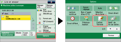 Placer les originaux dans le chargeur. Le cachet Terminé est apposé sur les originaux qui sont lus à partir du chargeur.