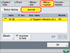 Affiche des informations détaillées relatives à la tâche sélectionnée. Vérifier les informations détaillées → appuyer sur [OK] pour revenir à l'écran Mémoriser.