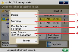 Pour prendre connaissance de la procédure concernant [Ajout. fichiers (Lire et mémoriser)] et obtenir plus d'informations sur l'utilisation de l'écran Lire, voir "Ajout d'un fichier (Lire et mémoriser)" et "Flux des opérations de lecture et de mémorisation".