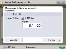 Si plusieurs fichiers sont sélectionnés, il est possible de modifier le nombre d'impressions en appuyant sur [Modifier nbre copies].