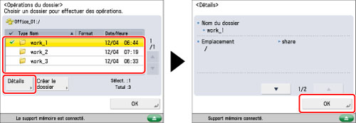 Sélectionner le dossier souhaité → appuyer sur [Détails] → [OK].