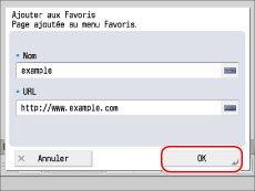 Appeler la page Web à ajouter aux Favoris → appuyer sur [Favoris].